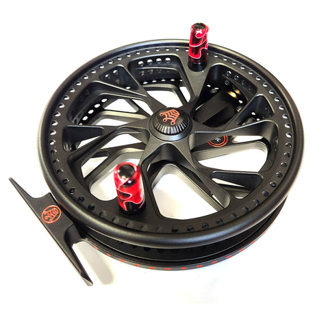 Kingpin Zodiac 500 Centerpin Reel - Black with Red Highlights