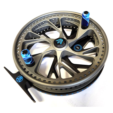 Kingpin Zodiac 500 Centerpin Reel - Grey & Black with Blue Highlights