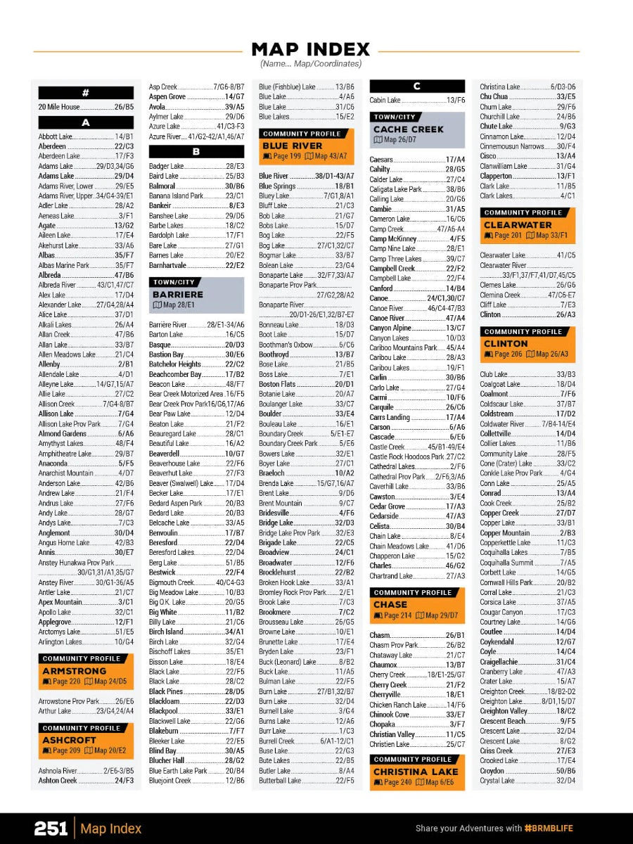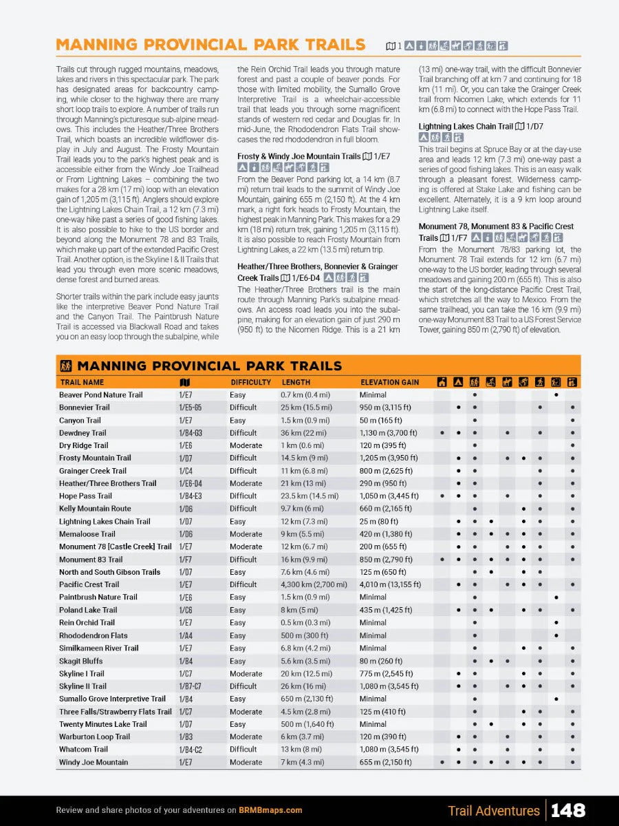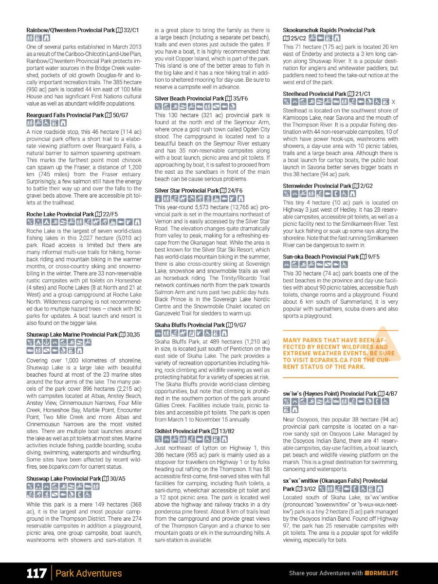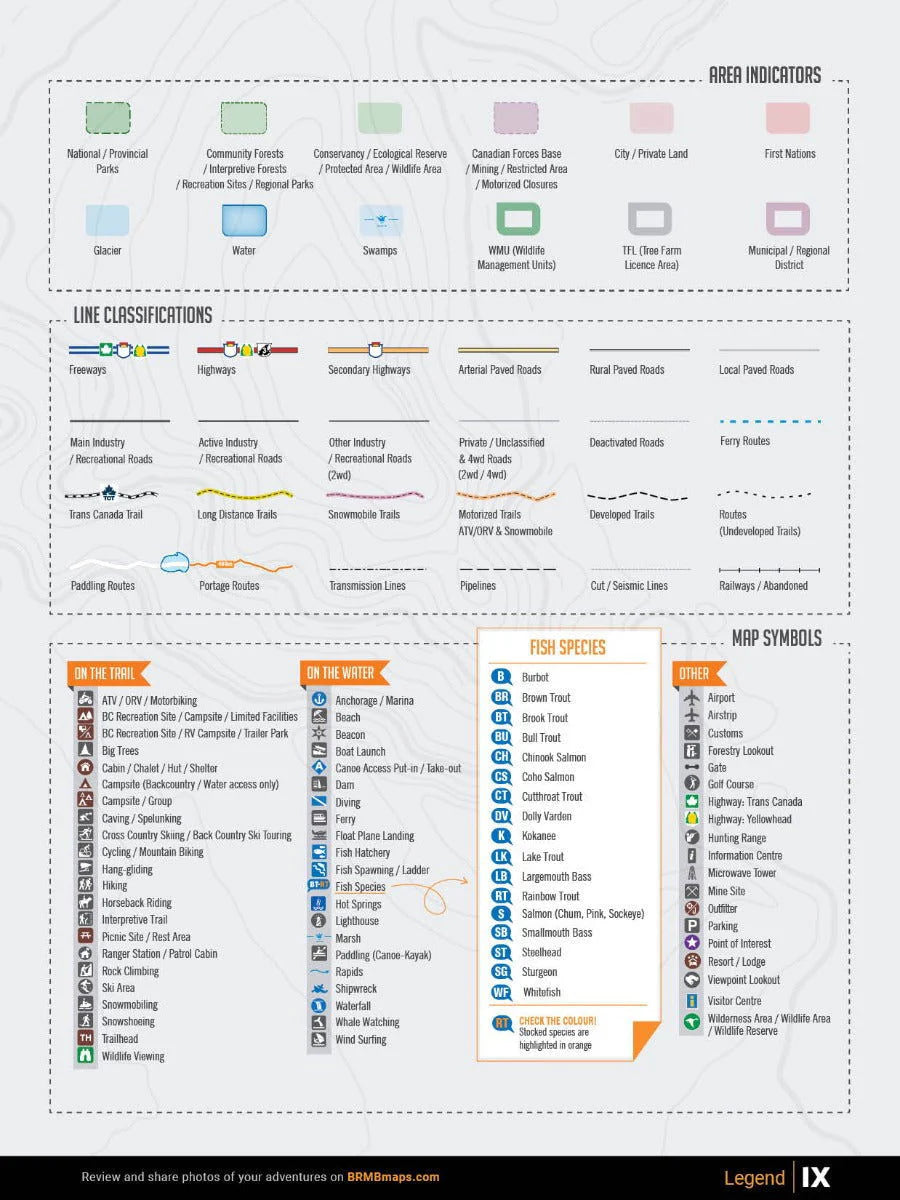 We have spent countless hours updating our maps and expanding our written content to allow you to navigate this magical part of BC as smoothly as possible. Our maps now feature private and leased land, labelled sportfish species for lakes and rivers, updated fish stocking and hiking trail charts, an updated and expanded Community Profiles section plus countless new roads, trails and paddling routes. Of course, this Mapbook includes all the classic features you have come to expect from our products including industry-leading topographic relief and shading, thousands of adventure Points of Interest, written Adventure descriptions and much more. No other navigational tool provides you with as much recreation information for the Thompson Okanagan as this one.