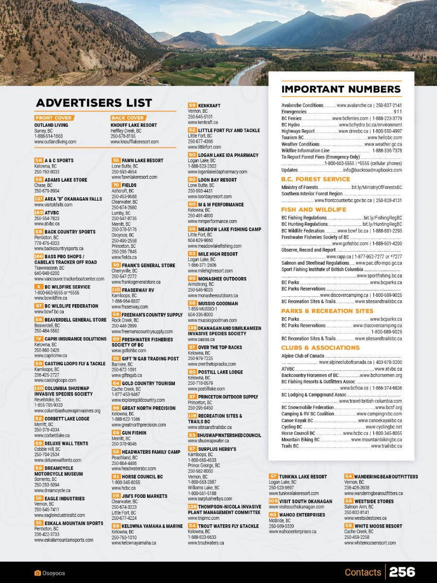Covering the heart of BCâs interior, including the cities of Kamloops, Kelowna, Merritt and Penticton, this Mapbook is your ultimate guide to camping, hiking, fishing, ATVing, snowmobiling, hunting, cross-country skiing, paddling and more in this incredible region. From the lush forests of Manning Provincial Park to the sparkling waters of Okanagan Lake, the arid desert landscape around Osoyoos, the pristine beaches of the Shuswap and the vast wilderness of Wells Gray Provincial Park, the Thompson Okanagan is an outdoor explorerâs paradise. To help you make the most of your time in this incredible area, the Backroad Mapbooks team has created the most comprehensive, detailed and easy-to-use Mapbook available for the region, so you can embark on the outdoor adventure of your choice with confidence.