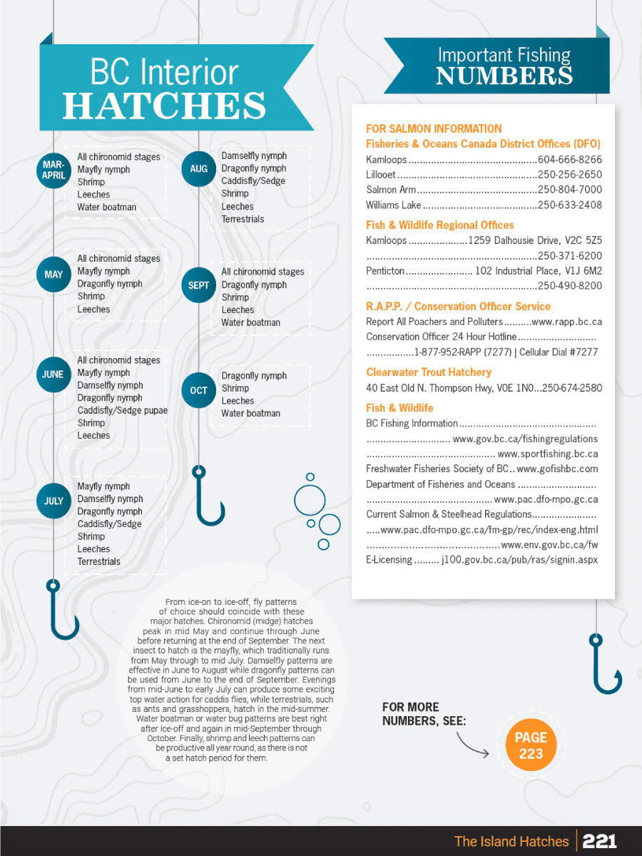 The printed version of this fishing mapbook comes in the convenient 21.5 x 28 cm (8.5 x 11 inch) mapbook format with a heavy-duty spiral-bound cover. Containing Region 3 (Thompson/Nicola) and Region 8 (Okanagan), the 224 page book includes over 210 lakes and rivers and shows you where to fish and how to best fish any given area. We have loaded it with fishing tips, breakdowns of various fish species, fly hatches and specific information on each lake and stream. Inside, you will find maps and depth charts for popular lakes, plus bar or hot spot maps of the main rivers in this region. Nowhere else will you find this combination of detailed regional information plus angling expertise all in one place.