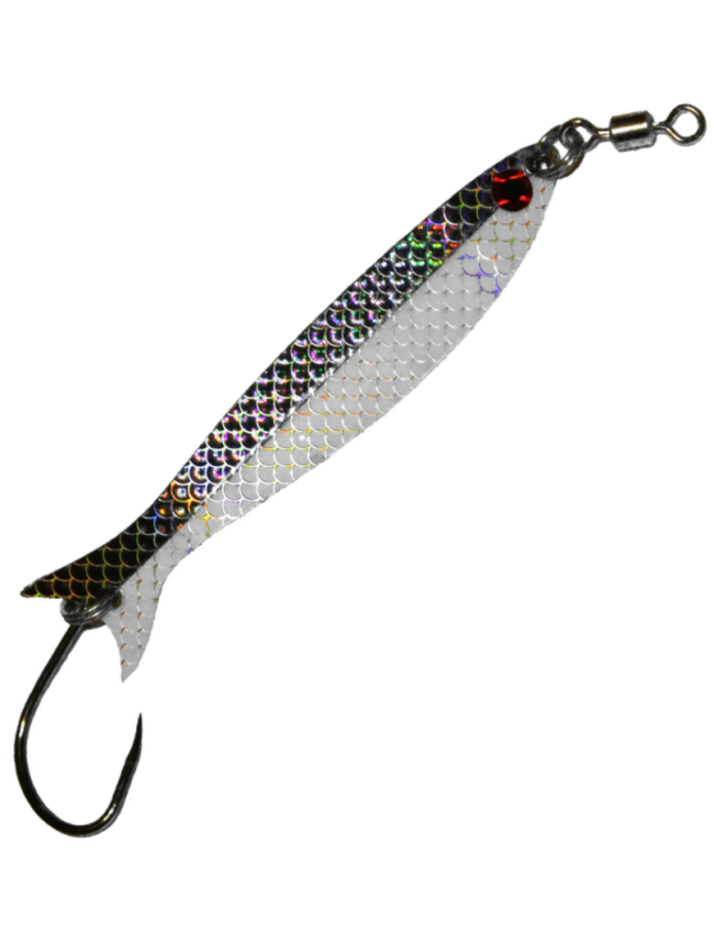 An awesome 3 3/4" Salmon spoon in 8 colors. Only available in Barbless, but can be easily changed to your favorite style of hook. These can be trolled at a variety of speeds to adapt to the needs of the day. With 2 sides of tape, these have a lot of flash. If you are looking for the perfect gift for the fisherman that has everything.