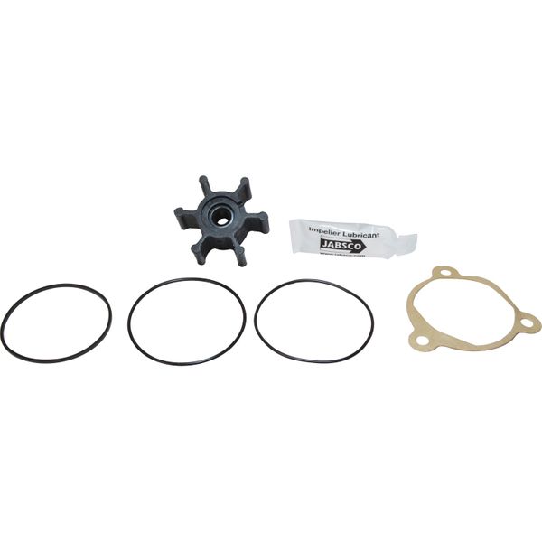 The Jabsco 6303-0001-P flexible neoprene impeller has 6 impeller blades, a single flat drive and is supplied as an impeller kit, with gasket, 3 O-rings and lubricant.