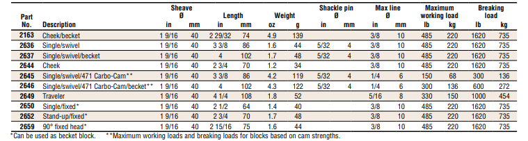 These smooth-running powerful performers make trimming easy, no matter how hard the wind blows. Carbo Air blocks are made of tough reinforced composite in a size and style to fit any system: singles, doubles, triples, quads, and quints; ratchets and fiddles; soft and hard attach; 18 - 75 mm. Perfect for main, jib and spinnaker sheets on dinghies and sportboats; control lines on boats of all sizes.
