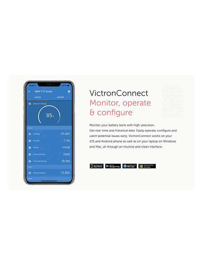 This Victron SmartSolar charge controller comes with the remote management possibility using your smart phone or other Bluetooth-enabled devices. This feature can be used for control, monitor and update the system wirelessly in the comfort of your home using the VictronConnect application. You also be connected directly to a Color Control GX, computer or other devices.