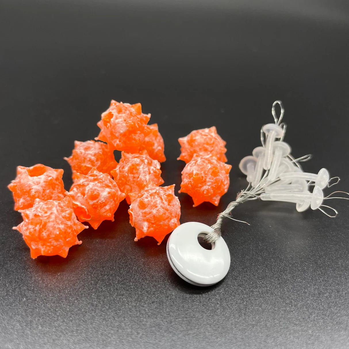 Similar to other BnR Soft Beads the BURRBEAD is manufactured with a through hole for easy loading on and off the line. This shape has two key advantages, first the spikes provide a unique bounce off of the river structure while being fished and second the overall profile of the bait provides a differentiating shape when compared to other beads. Plus once the fish try them they will be stuck on them for good!