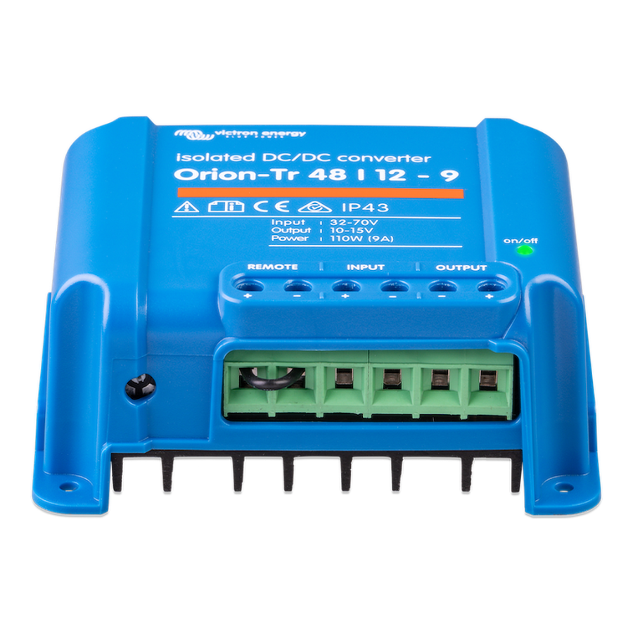 Orion-Tr 24/24-5A (120W) Isolated DC-DC converter - Remote on-off: The remote on-off eliminates the need for a high current switch in the input wiring. The remote on-off can be operated with a low power switch or by for example the engine run/stop switch (see manual).