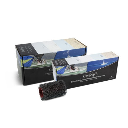 KiwiGrip is a revolutionary, durable, non-skid coating that spreads quickly and easily with our proprietary roller, offering a beautiful, high traction surface. By varying the application technique, the texture can be adjusted from a rolled pleasure boat texture to an industrial aggressive work boat texture. As a homogeneous material, KiwiGrip doesn't suffer from the problems encountered with products filled with sand, walnut shells, beads, rubber fleck, or other fillers. Coatings with fillers tend to wear through, and the fillers fall out leaving an unsafe deck that's hard to clean and even harder to re-coat. Durability KiwiGrip is a very hard acrylic polymer providing a durable, homogeneous, elastic surface. KiwiGrip will not wear through and expose filler materials. Color Options Loaded with a UV stabilizer for consistent color. Available in four standard colors. White Cream Blue Grey Black Perfect Texture Apply over wood, fiberglass, epoxy, concrete or metal and dial in the perfect texture for your application by varying your technique. Non-Toxic No volatile solvents, very low VOC. Cleans up with soap and water.