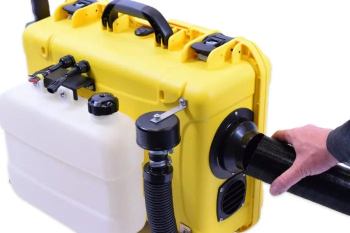 Portable Diesel Air Heater Planar 4D – 12V is a 4 kw self-contained heater that comes in a crushproof rain-resistant case. Runs on diesel or kerosene and 12v DC. Equipped with a silencer, air intake filter, and remote wired controller.