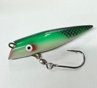 The Tubby was originally designed for fishermen in the Tyee Club in Campbell River, because it will work well at slower speeds. The Tyee Club requires that fishermen are rowing. The Tubby may also be trolled fast and will fish alongside a Classic or spoon nicely.